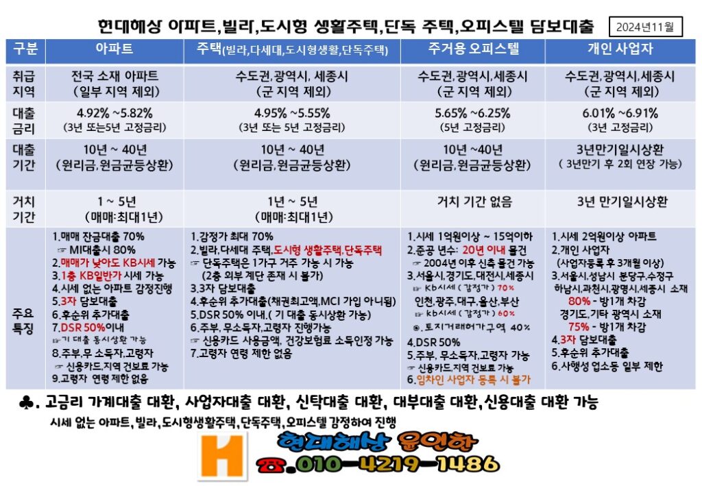 1.주택담보대출(아파트,빌라,다세대주택,단독주택)