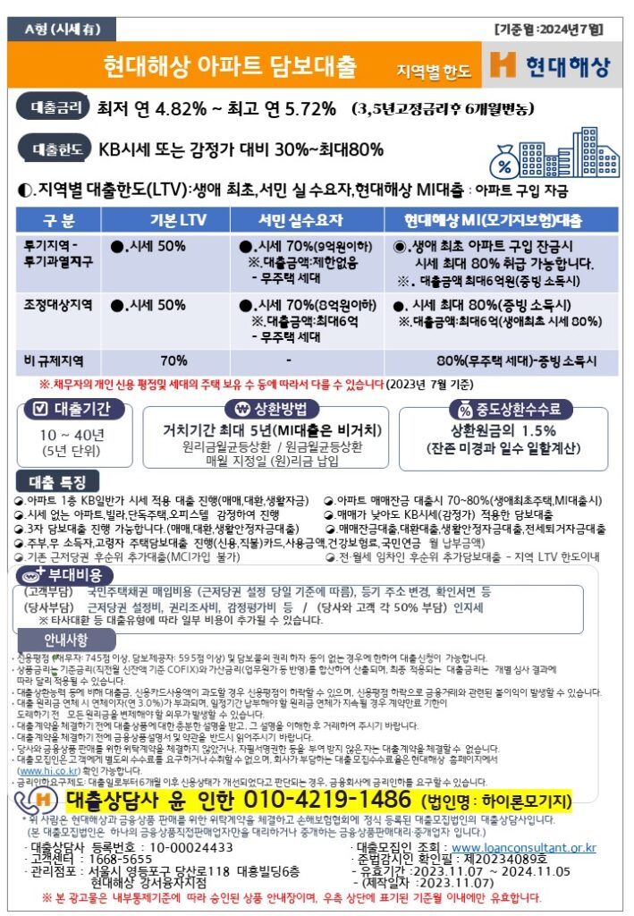 현대해상 주택담보대출 주요 특징은?