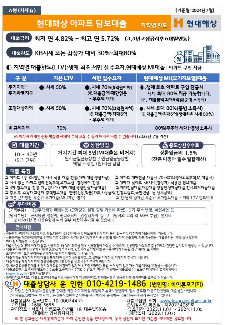 현대해상 사업자 아파트대출(24년 7월)